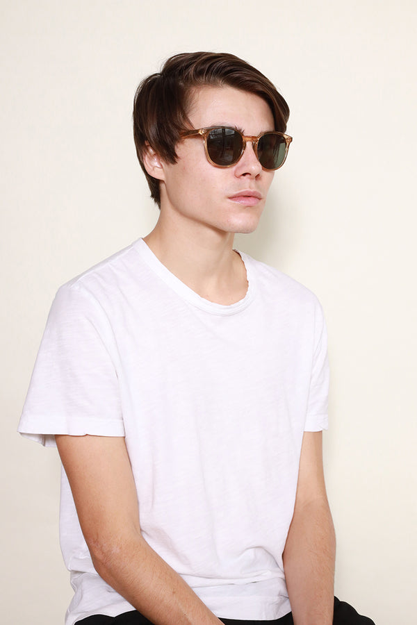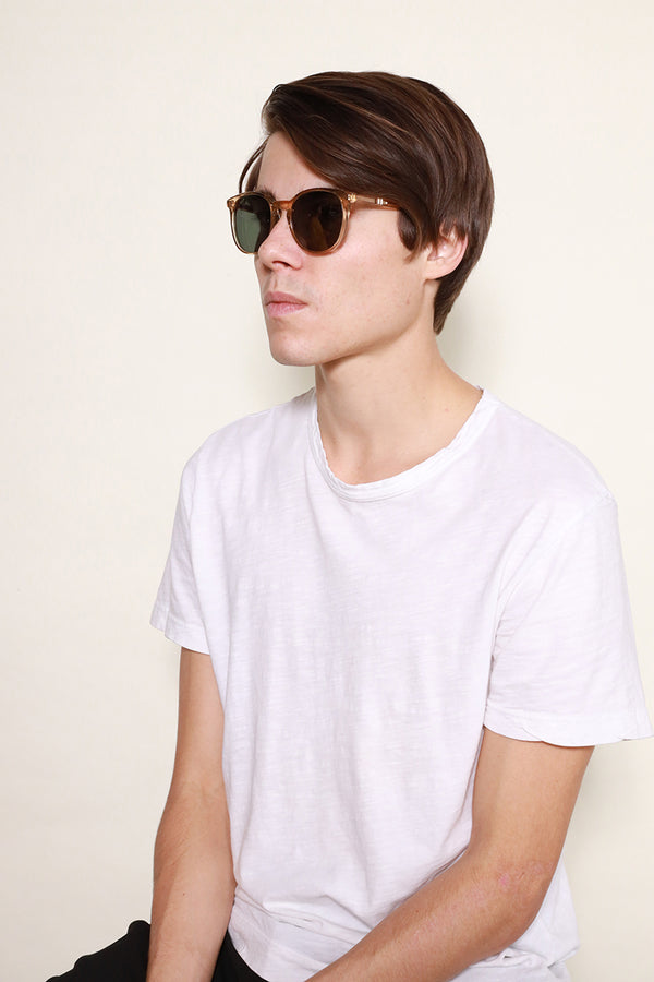 WONDERLANDの定番品番となったBARSTOW。時代や流行に左右されることのないスタンダードなフレームながら、細いフレームにレンズ幅を若干広くしたことにより男女問わず様々な方にフィットするよう洗練されたデザインに。ややスクエアなフレームは掛けた時の印象がシャープさを増し、アクの少ないマイルドで優しい印象となります。とても掛けやすいモデルなので、まだWONDERLANDをお持ちでない方にも、1本目としてお勧めしやすいモデルです。