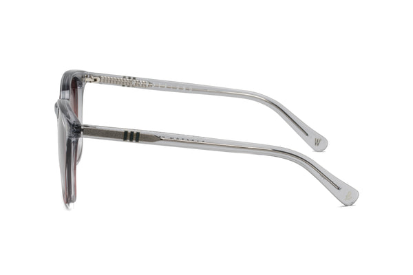 WONDERLANDの定番品番となったBARSTOW。カラーは2022年に新たに加わった「ClearGrey」フレームに「レッドワイン」レンズを搭載。スモーク掛かったクリアは大人な印象を与えます。時代や流行に左右されることのないスタンダードなフレームながら、細いフレームにレンズ幅を若干広くしたことにより男女問わず様々な方にフィットするよう洗練されたデザインに。ややスクエアなフレームは掛けた時の印象がシャープさを増し、アクの少ないマイルドで優しい印象となります。とても掛けやすいモデルなので、まだWONDERLANDをお持ちでない方にも、1本目としてお勧めしやすいモデルです。
