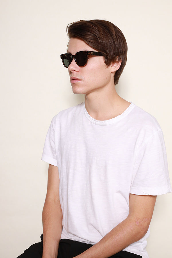 懐かしさを感じさせてくれるやや小振りなウェリントン型のデザートショアーズ。シャープなイメージと同時に知的な印象を与えてくれます。BARSTOW、FONTANAをご愛用頂いている方にはフィットしやすく、また少し小振りなフレームをお探しの方にも、このスタンダードなアウトラインながら現代風の味付けを施したDESERT SHORES、ぜひお試し頂きたい1本です。