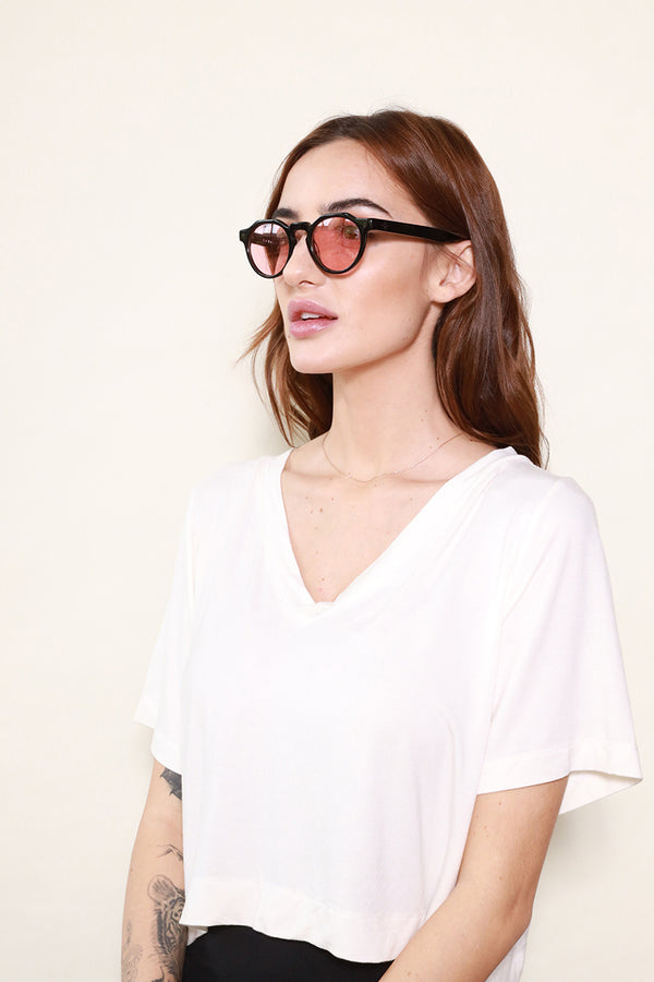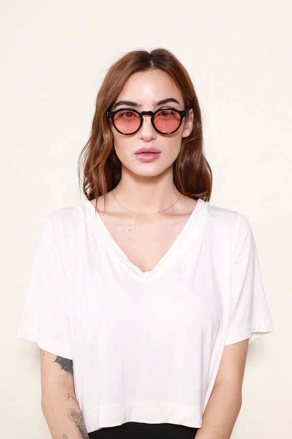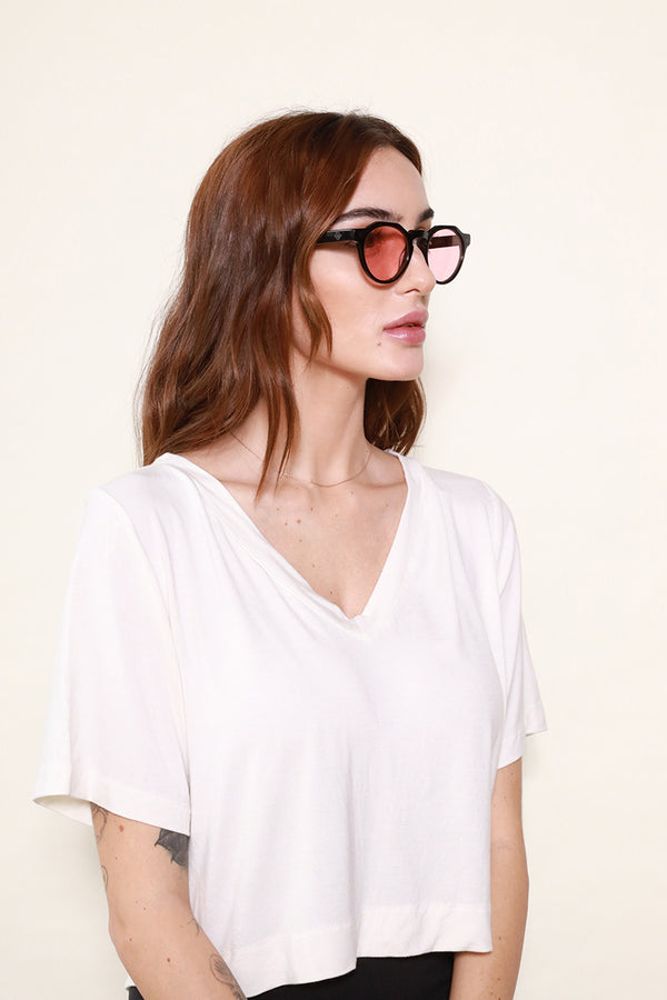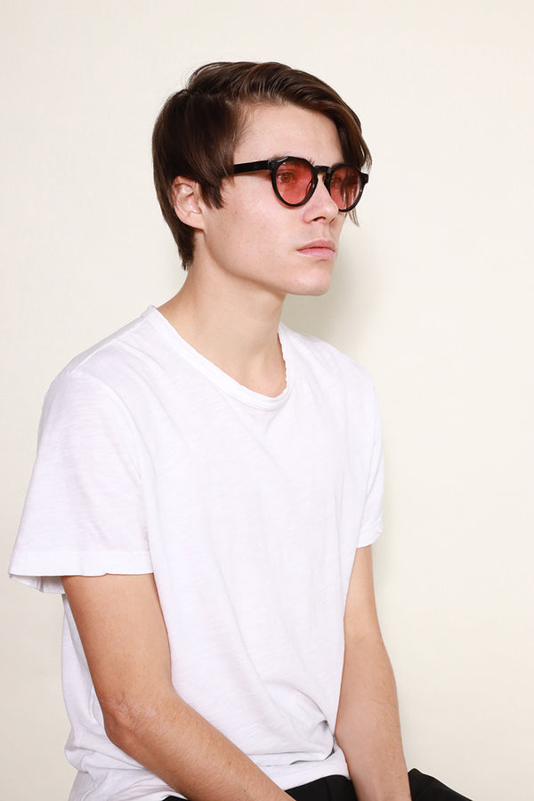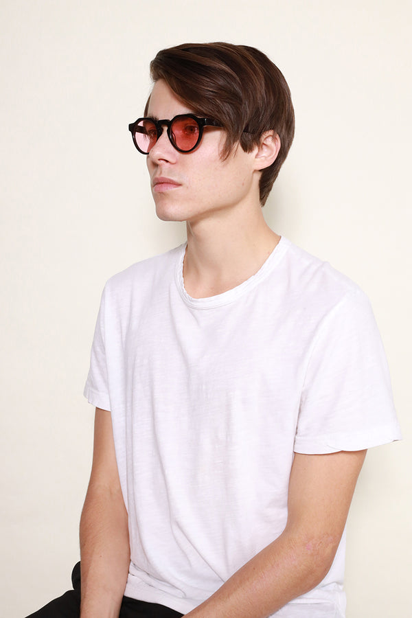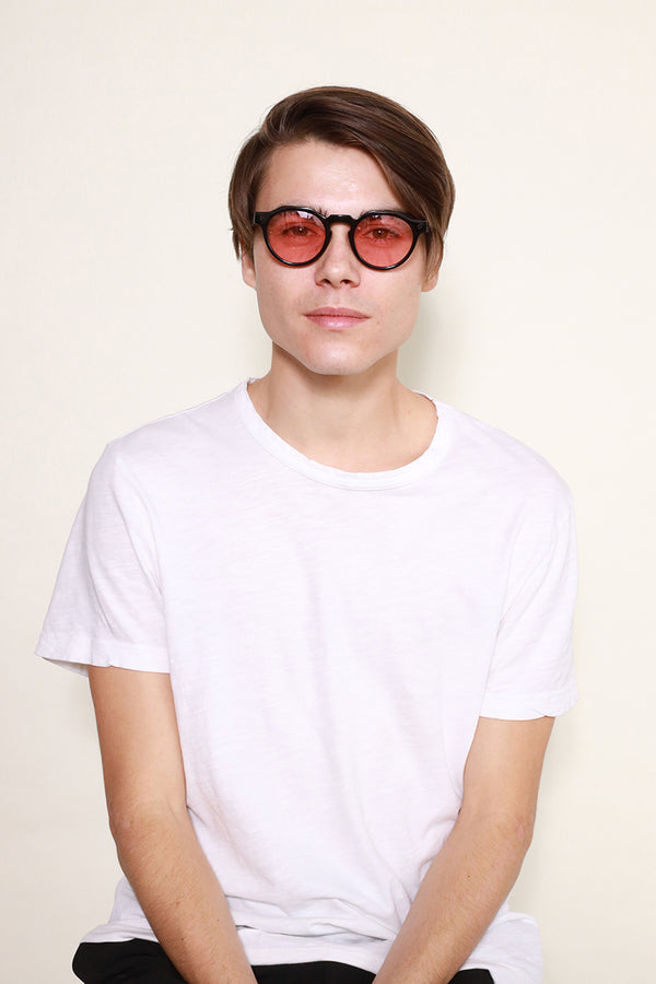 WONDERLANDから待望のクラウンパントフレームとなるFONTANA。レトロな雰囲気を醸し出すフレームに、ライトカラーレンズの組み合わせが現代らしさを演出する1本。やや小振りなレンズながら、非常に掛けやすく、サングラスに馴染みのなかった方にもお使い頂けます。個性の強いデザインと思われがちながら、掛けてみると驚くほどマッチする、お試し頂きたいモデルです。可視光線透過率の高いライトローズのレンズは陽が落ちた後でもご使用頂けます。
