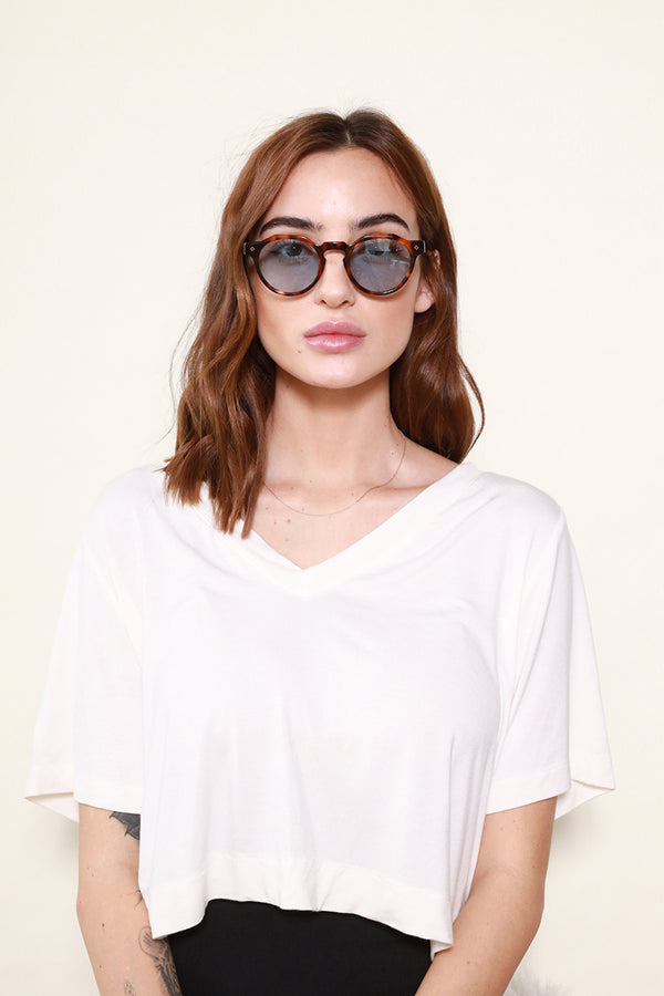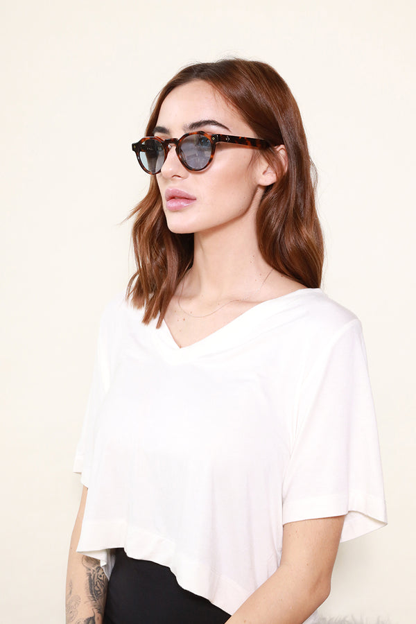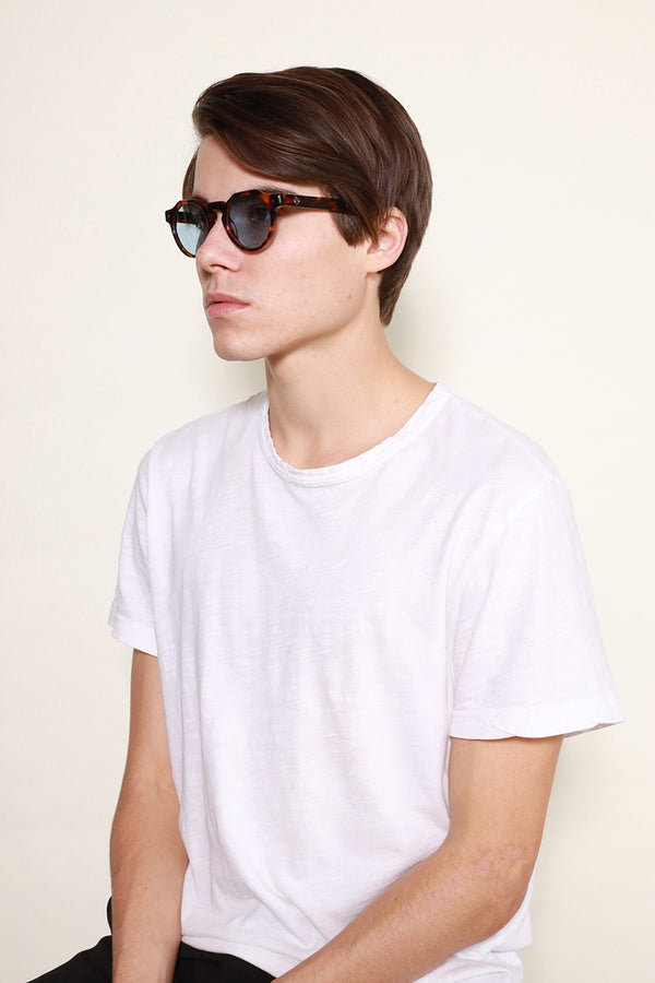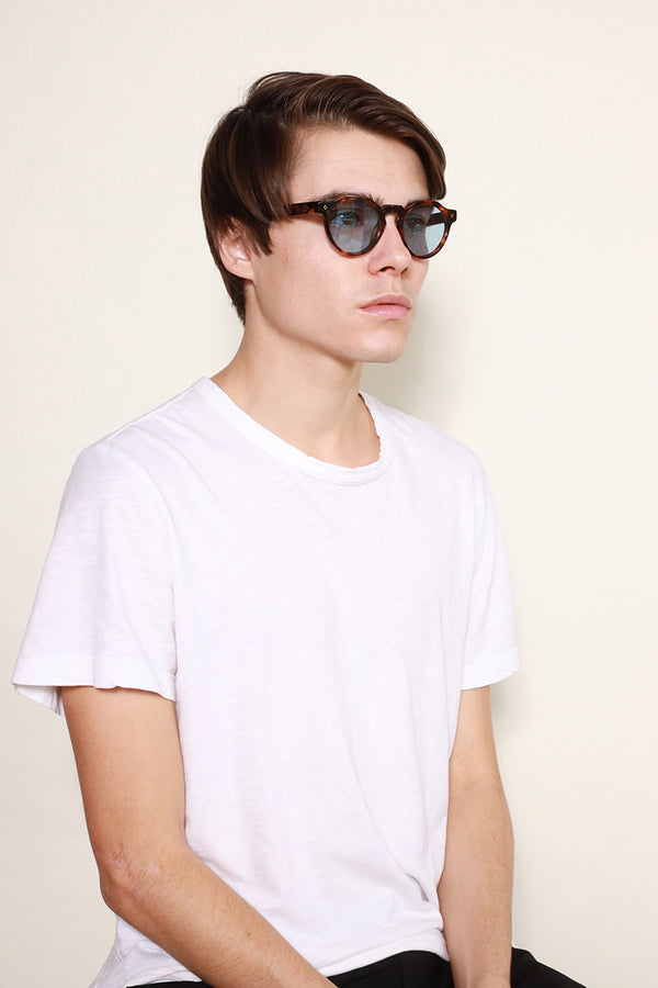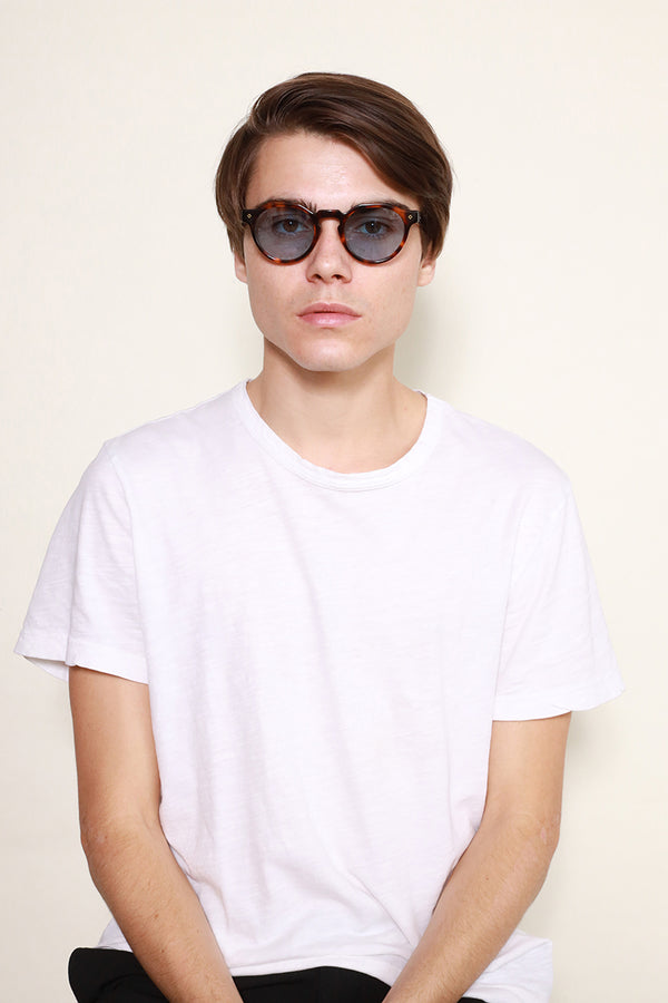 WONDERLANDから待望のクラウンパントフレームとなるFONTANA。レトロな雰囲気を醸し出すフレームに、ライトカラーレンズの組み合わせが現代らしさを演出する1本。やや小振りなレンズながら、非常に掛けやすく、サングラスに馴染みのなかった方にもお使い頂けます。個性の強いデザインながら掛けてみると驚くほどマッチする、お試し頂きたいモデルです。