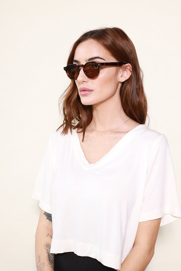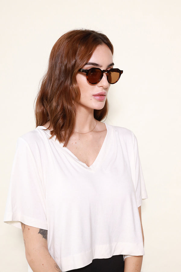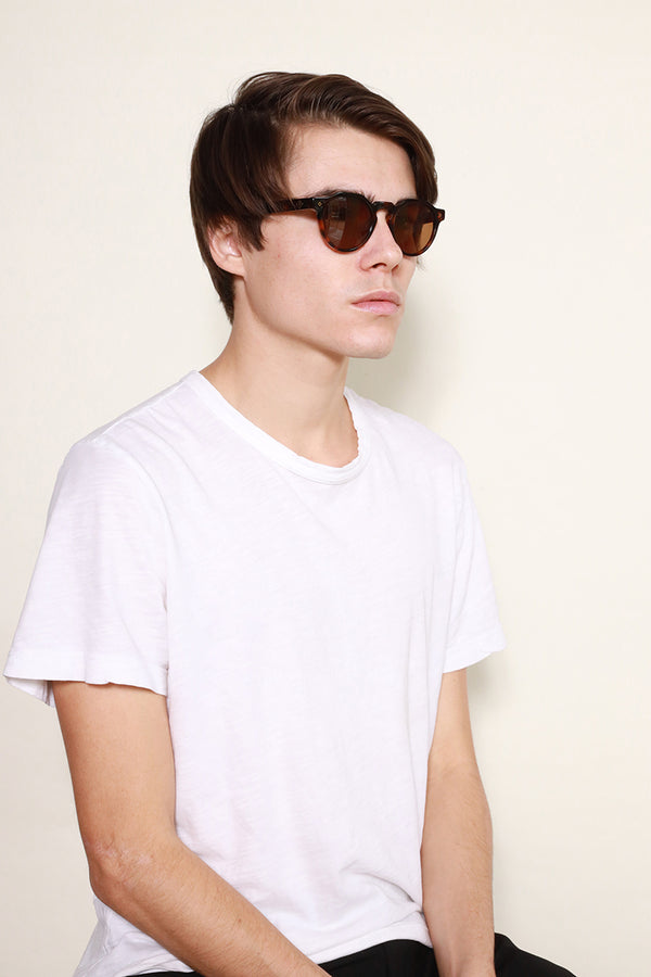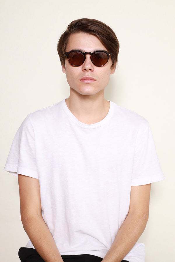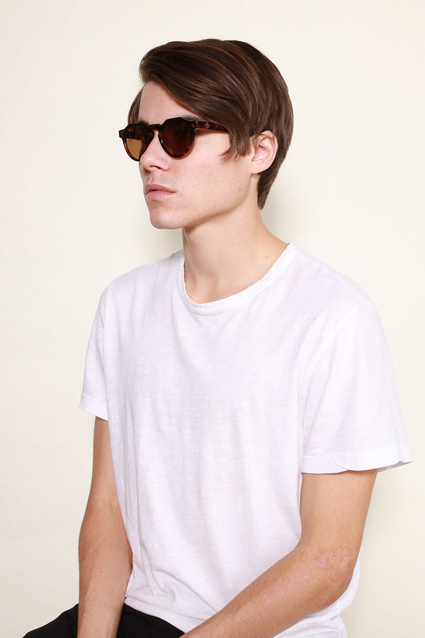 WONDERLANDから待望のクラウンパントフレームとなるFONTANA。レトロな雰囲気を醸し出すフレームに、ライトカラーレンズの組み合わせが現代らしさを演出する1本。やや小振りなレンズながら、非常に掛けやすく、サングラスに馴染みのなかった方にもお使い頂けます。個性の強いデザインながら掛けてみると驚くほどマッチする、お試し頂きたいモデルです。