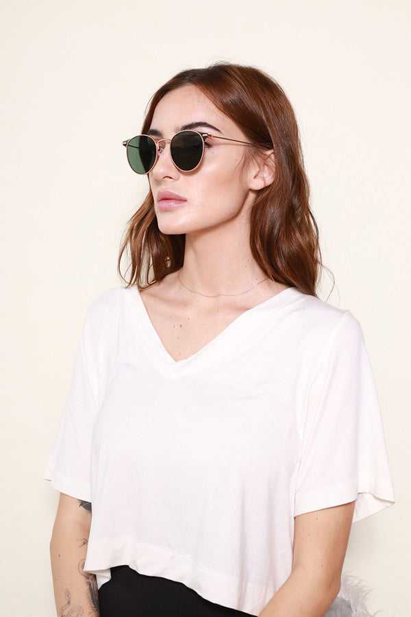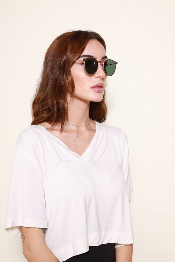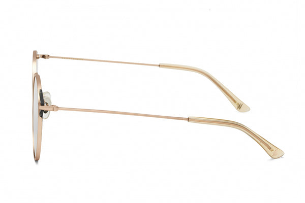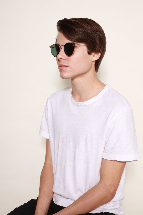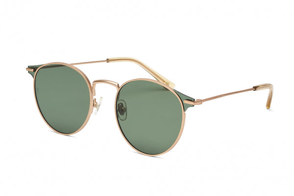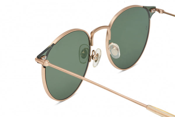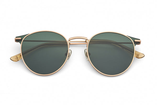 ボストン型ながらメタルフレーム、フラットレンズ、シングルブリッジによってシャープな印象を与えるモレノバレー。特徴はヨロイと呼ばれる接続パーツをレンズに直接繋いでいる点。これにより丸味を帯びたレンズにクールなエッセンスを与えます。
